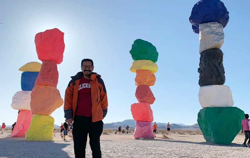 The mammoth Seven Magic Mountains stretches upwards from the desert about 10 miles south of Las Vegas, off I-15, near Jean Dry Lake, The piece, comprising seven towers of stacked, multi-colored boulders, was created by Swiss artist Ugo Rondinone in 2016. Visitors park in a small lot and walk down a dirt path to see the 30 to 35-foot-high totems of locally-sourced boulders up close and take photos. Admission is free and open to the public but there aren’t any restrooms or amenities.