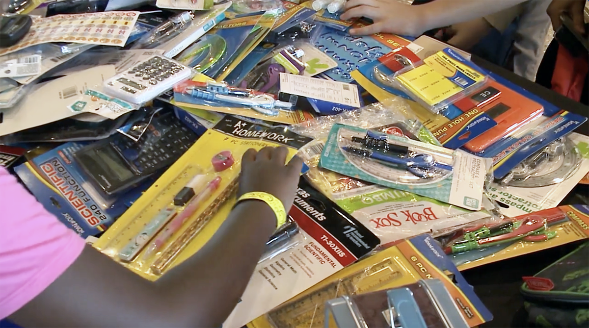 El Condado Clark, en colaboración con un grupo de socios comunitarios, efectuó su feria anual de regreso a clases, destinado a ayudar a los niños en hogares de crianza a regresar al aula preparados y confiados. En la foto, parte de los útiles escolares que obsequiaron. (Foto Clark County TV)