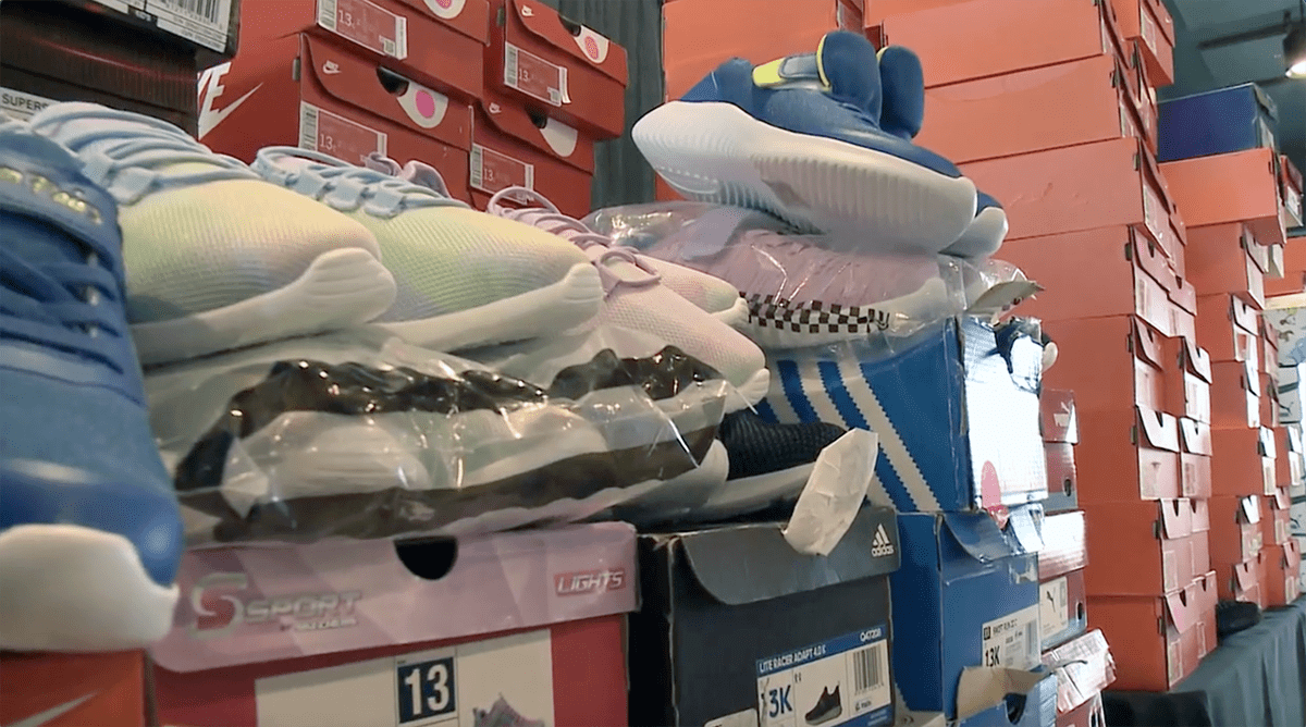 El Condado Clark, en colaboración con un grupo de socios comunitarios, efectuó su feria anual de regreso a clases, destinado a ayudar a los niños en hogares de crianza a regresar al aula preparados y confiados. En la foto, los zapatos tenis que distribuyeron entre los presentes. (Foto Clark County TV)