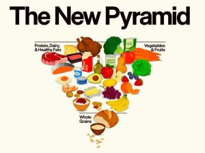La nueva pirámide invertida de la administración del gobierno de Donald Trump organiza la alimentación en 3 grupos, en lugar de los 6 que tenía la anterior: