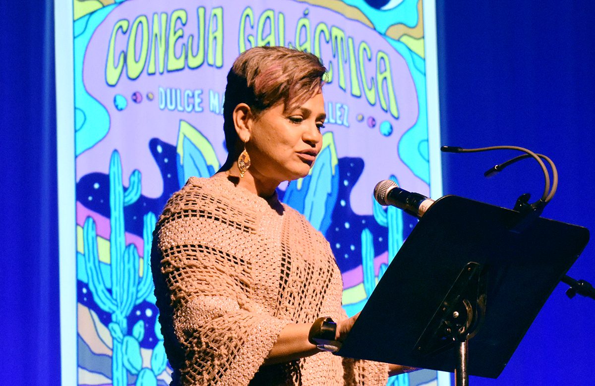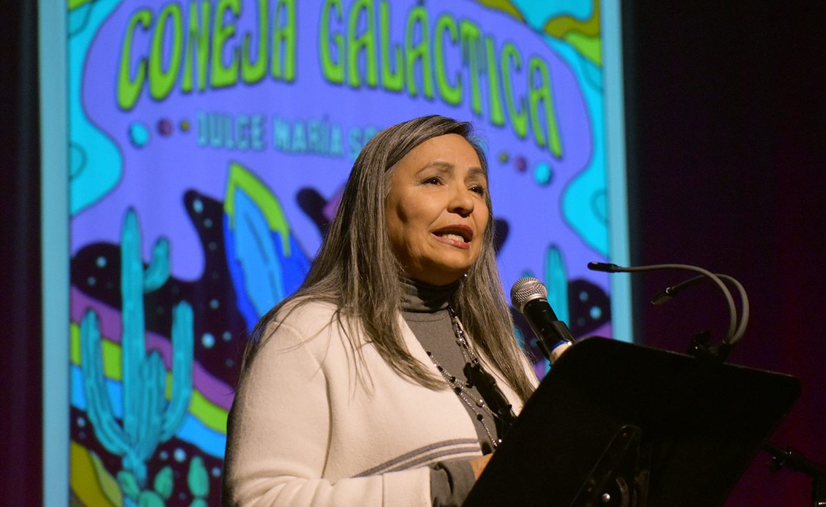 La reconocida escritora de origen michoacano, Dulce María Solís Téllez hizo la presentación de su más reciente poemario titulado “Coneja galáctica” en el teatro del Centro Cultural Winchester Dondero el jueves 23 de enero de 2025.