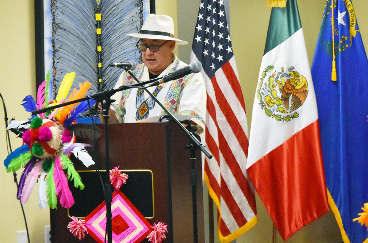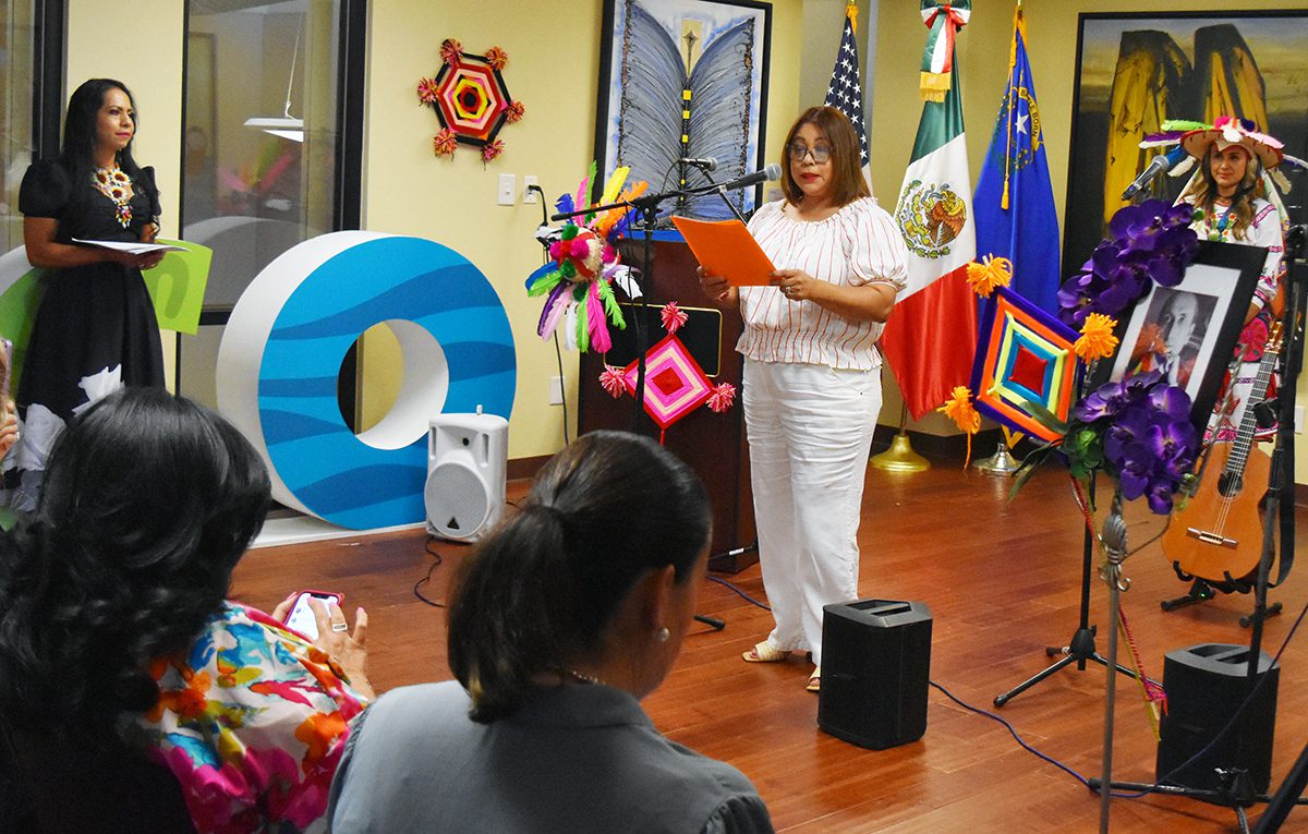 “Muchas gracias por estar aquí. Mapy, te agradezco por haber elegido el consulado de México, para conmemorar el 154 aniversario del natalicio del poeta nayarita Amado Nervo; es gratificante saber que, además de excelente poeta, también fue diplomático. Además, celebro el poder de convocatoria que tienes, ya que es interesante saber que todo mundo quiere saber más sobre la vida y obra de Amado Nevo”, expresó Patricia Cortés Guadarrama, titular del consulado de México en Las Vegas, agregando “agradezco también a Maritza Rodríguez representante de la senadora Catherine Cortez Masto y a todos los representantes y miembros de la comunidad; les reitero que esta es su casa, estamos aquí por y para ustedes, para escucharlos y hacer posible la realización de eventos de ésta índole. Soy de Jalisco y muy cercana a los huicholes”.