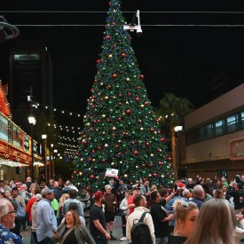 Encendieron luces de árbol navideño en el Downtown de Las Vegas
