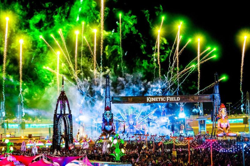 Kinetic Field está enmarcado con instalaciones de arte y fuegos artificiales en el festival de música electrónica Electric Daisy Carnival. (Foto cortesía Insomniac Events)