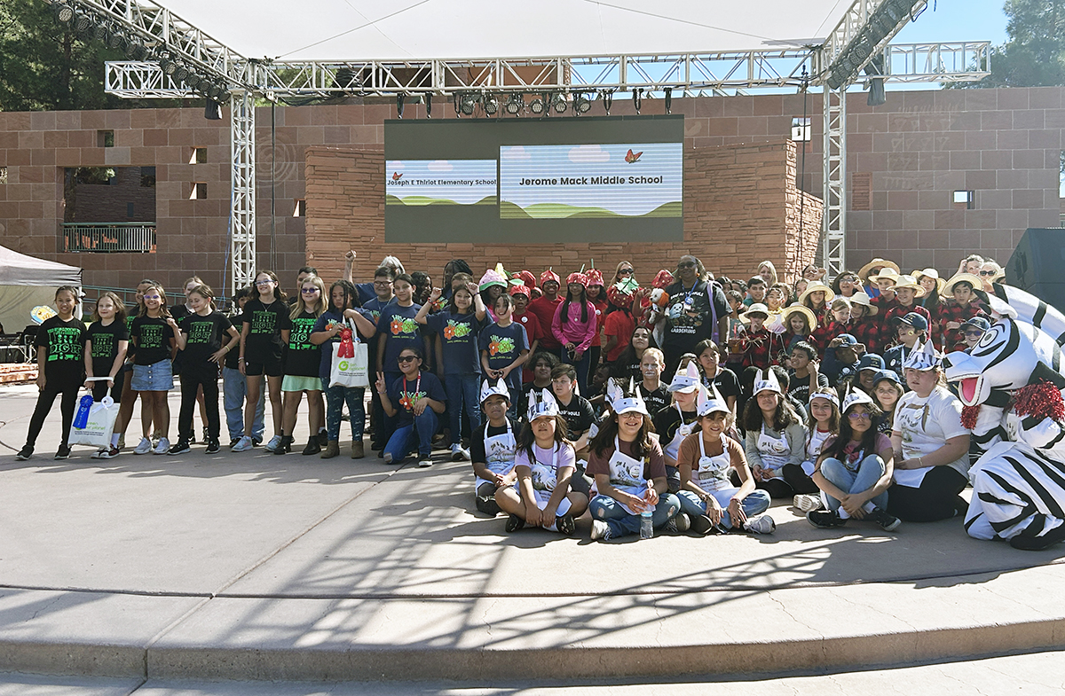 Green Our Planet ofrece a los maestros cientos de lecciones de STEM, nutrición, educación financiera y conservación de PreK-12 a través de su plataforma en línea y capacita a los maestros sobre cómo utilizar laboratorios de hidroponía y jardines al aire libre para enseñar estas lecciones. Los estudiantes del Distrito Escolar del Condado Clark (CCSD, por sus siglas en inglés) se convierten en “empresarios agrícolas”, donde aprovechan las habilidades de educación financiera que aprendieron mientras cultivaban alimentos para crear y llevar a cabo sus propios planes de negocios en el Giant Student Farmers Market.