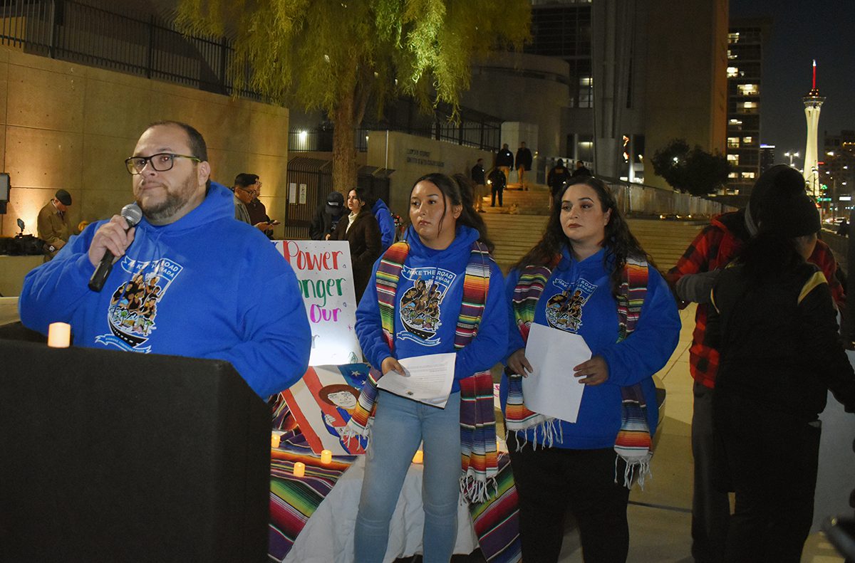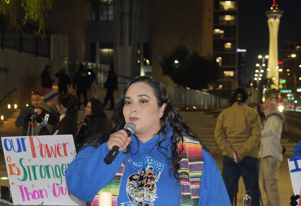 “Esta noche nos unimos para alzar nuestra voz (contra) políticas dañinas que no sólo perjudican a nuestras familias, sino también ponen en riesgo nuestro futuro”, aseveró Samuel Cano, de la organización -sin fines de lucro- Make The Road Nevada, agregando “No están solos en esta lucha, hay gente que está dispuesta a ayudarnos. Este también es nuestro hogar. No necesitamos vivir en las sombras toda nuestra vida, por eso estamos aquí para seguir adelante con eso”.