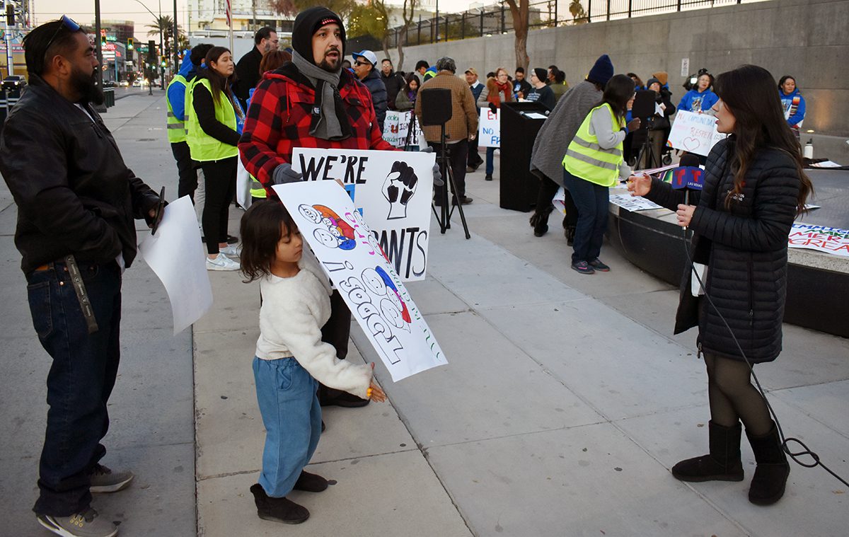 Activistas y defensores de los inmigrantes se manifestaron en Las Vegas contra órdenes ejecutivas de Trump dirigidas a la inmigración indocumentada.