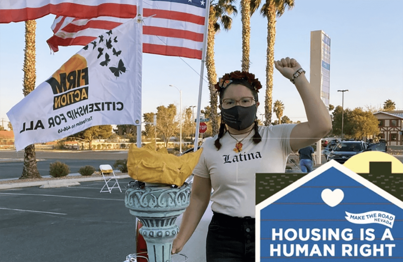 Miembros de Make The Road Nevada y del Centro para la Democracia Popular agradecieron al muralista de renombre internacional Nelson Rivas “El Cekis”, así como a Nelly Tobon “Mujer Mariposa”, Pedro “Smurf” Quintanilla, Pink House Creations by Michelle Beardsley, There’s Nothing To Do in Vegas y Olmeca.