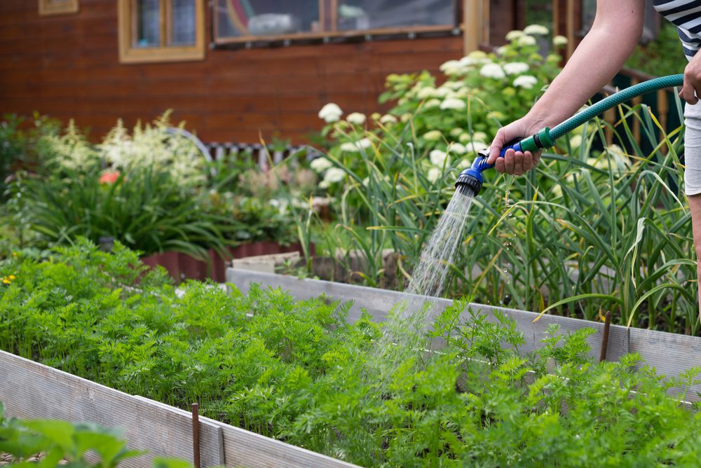 Container gardening requires more water than traditional gardens. Water your plants daily during hotter months and less frequently during cooler months.
