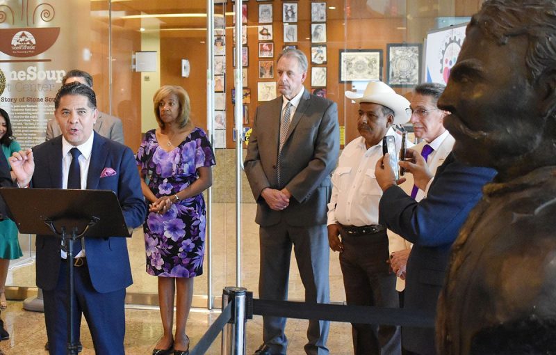 La ceremonia de develación del busto del ícono revolucionario contó con la presencia de todos los miembros del concilio y el entonces alcalde John Lee (ahora postulado para una curul en el Congreso por el Distrito 4); así como de Tiburcio Zapata Fierros, nieto del “Caudillo del Sur”, como también era conocido el héroe revolucionario y otros familiares cercanos, entre los que destacaron Nicolás Zapata Villa, bisnieto, e Itzel, sobrina nieta del general. (Foto Frank Alejandre / The Nevadan / El Nevadense)