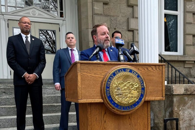 He thanked Attorney General Aaron Ford, a Democrat running for governor, for joining a coalition of 11 states filing suit over tariffs, saying this will allow the Trump administration to be held accountable.