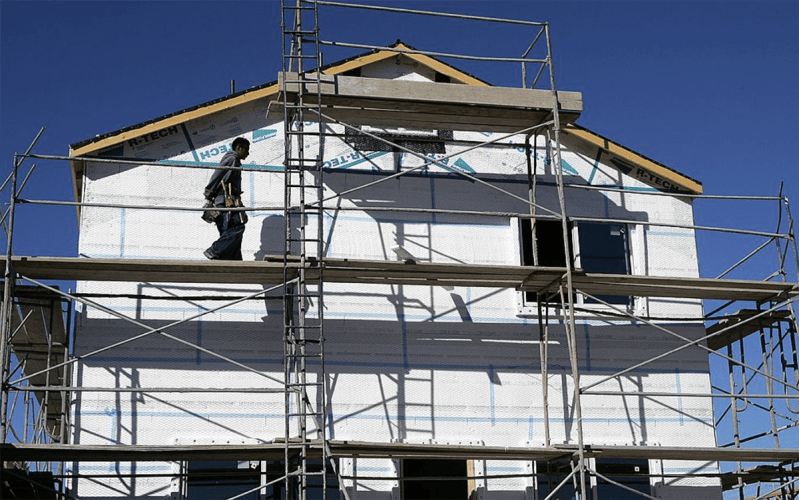 Un trabajador camina sobre un andamio en una casa en construcción el 26 de octubre de 2006 en Las Vegas. (Foto Ethan Miller/Getty Images)