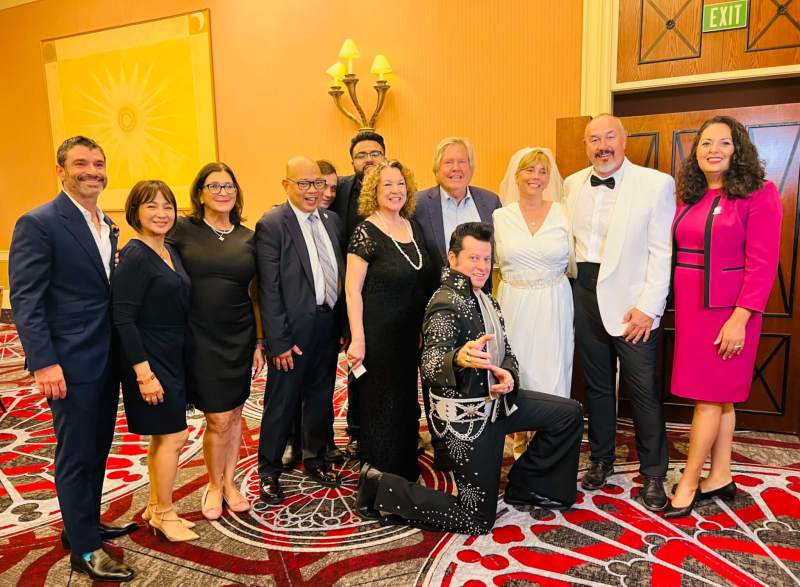 The anniversary celebration began in the morning with a brunch in the Milano Ballroom with a beautiful cake as the centerpiece. Clark County Clerk Lynn Marie Goya organized the event and was recognized by attendees for raising the profile of weddings in Las Vegas at a national and international level.